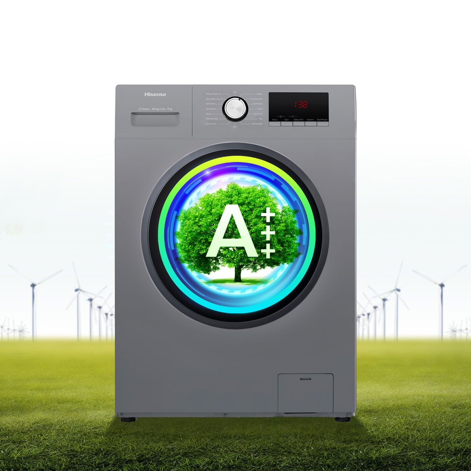 - A+++ Energy Rating - 15 Automatic programs - Steam function - Super Quick wash - Intelligent Red LED display - Child lock function - 1~24 hour delay start - 3 year warranty